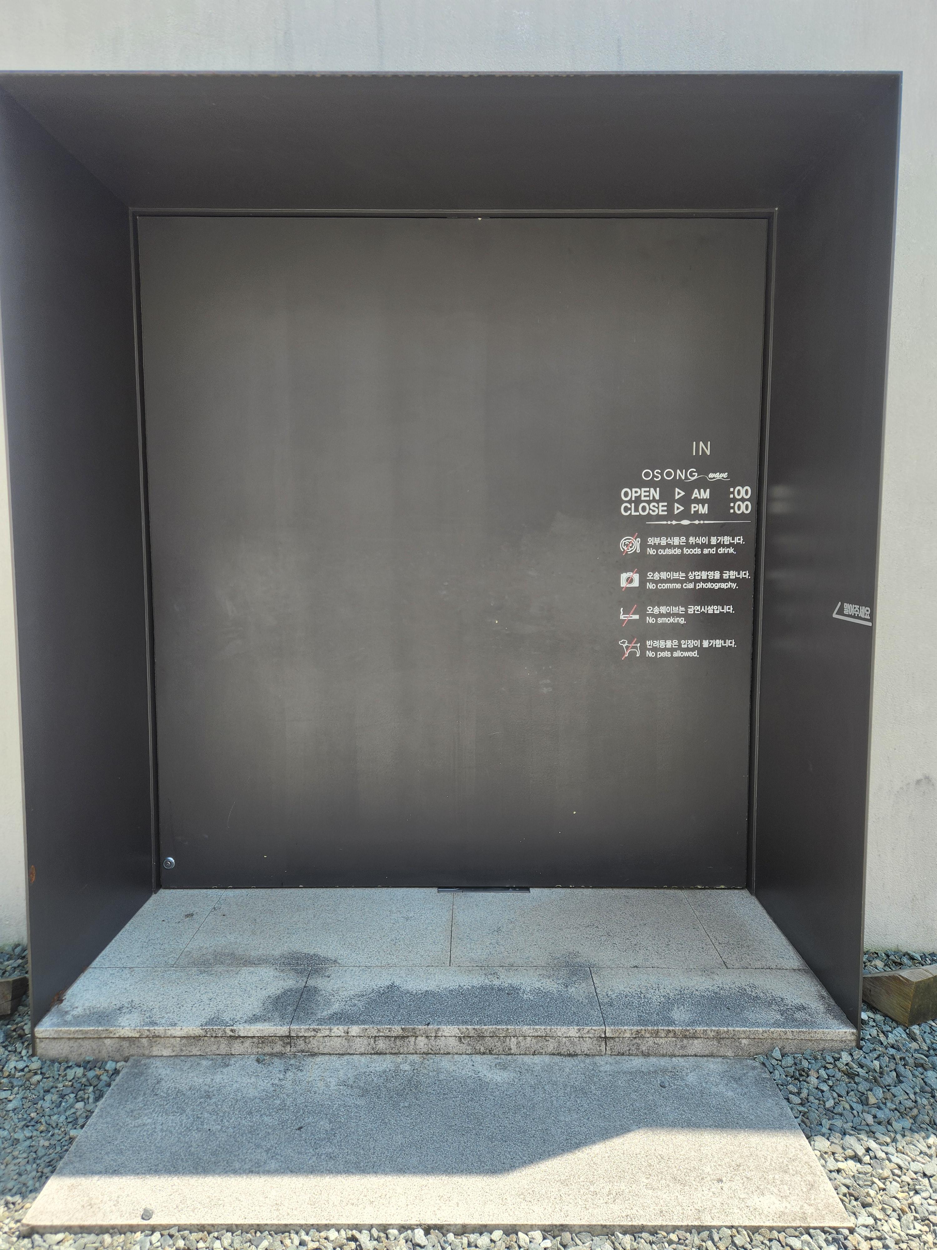 오송웨이브 입구는 이렇게 생겼는데요 특이하게 밀고 들어가는 문이더라구요. 약간 회전문 같은 느낌이였어요 ㅎㅎ